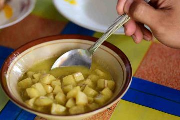 (Beritadaerah-Gorontalo) Seorang pengunjung menyendok sayur lambi pilitode di rumah makan Fajar, Jalan Trans Sulawesi, Kabupaten Gorontalo, Minggu (3/11/). Pilitode adalah...