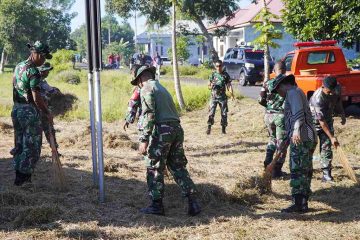 (Beritadaerah-Tidore) Sejumlah anggota Tentara Nasional Indonesia Angkatan Darat (TNI-AD) Kodim 1505/Tidore membersihkan rumput saat kerja bakti bersama Pemerintah Daerah, TNI,...