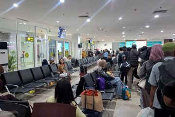 (Beritaderah-Pekanbaru) Situasi ruang tunggu keberangkatan Bandara Pekanbaru di Jumat malam (16/01). Terlihat antrian penumpang yang akan boarding ke pesawat. Photo:...