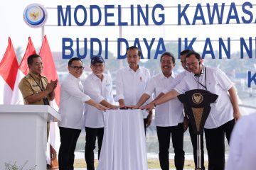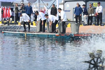 (Beritadaerah-Karawang) Presiden Joko Widodo didampingi Menteri Kelautan dan Perikanan (KP) Sakti Wahyu Trenggono meresmikan modeling kawasan tambak budi daya ikan...