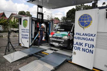 (Beritadaerah-Palangka Raya) Uji kelayakan kendaraan gratis yang dilakukan oleh Petugas Dinas Perhubungan (Dishub) Kota Palangka Raya di halaman Kantor Wali...