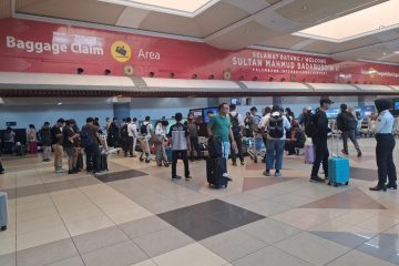 (Beritadaerah-Palembang) Situasi kedatangan dan pengambilan bagasi di Bandara Sultan Mahmud Badaruddin II International Palembang pada Senin siang (11/8). Photo: Hanung/BD...