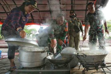 (Beritadaerah – Palangka Raya) Kegiatan dapur umum yang disiapkan untuk kebutuhan makanan bagi warga terdampak banjir dan pengungsi Kelurahan Langkai....